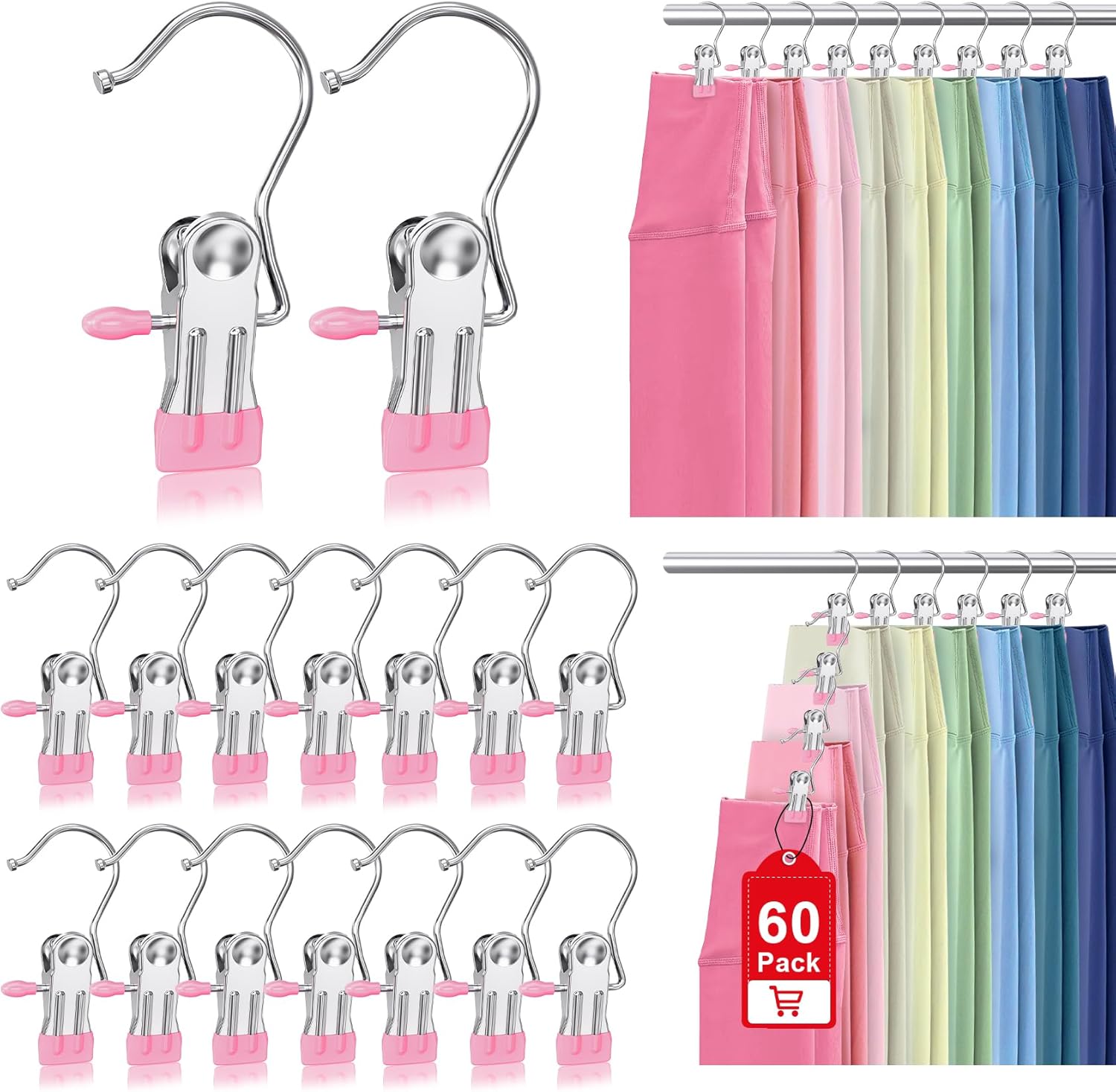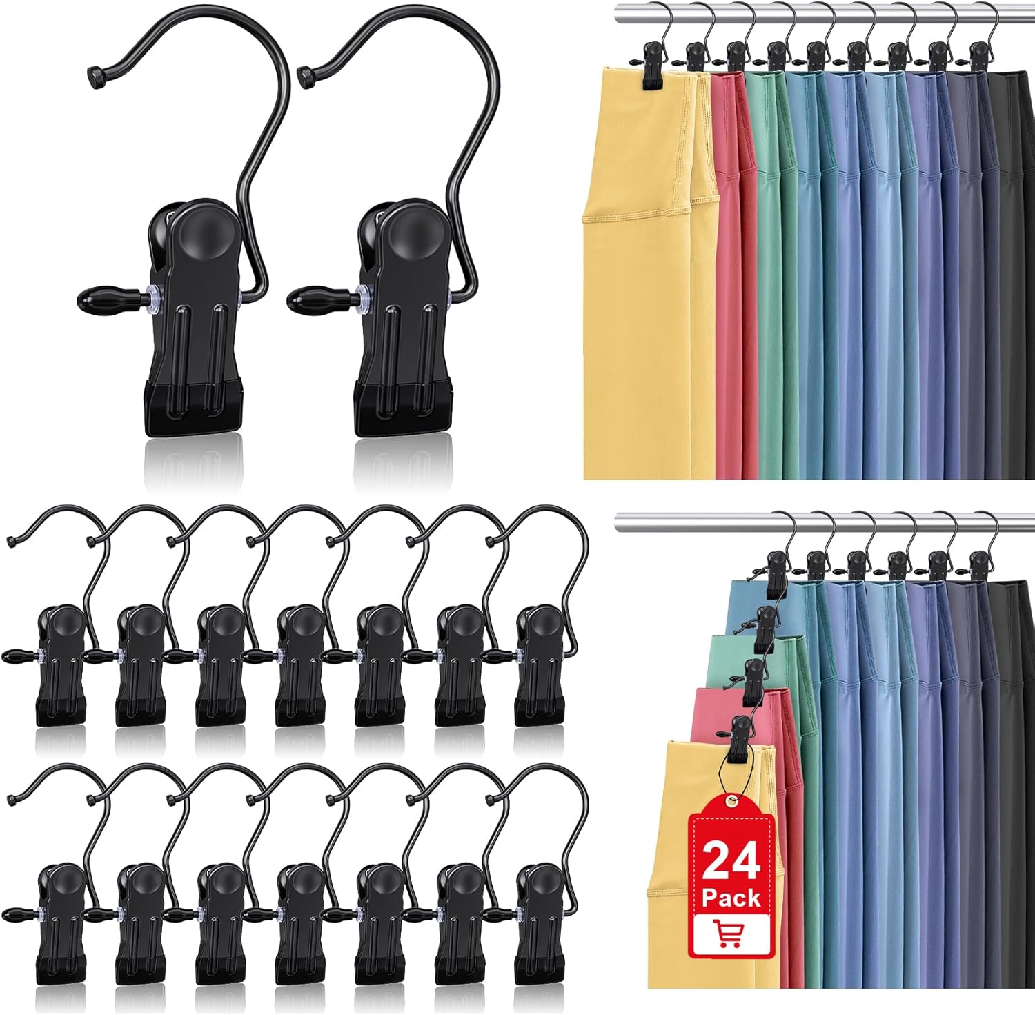 • Upgraded Design: The innovative 360° rotate design of the pants hangers with clips allows effortless access to your footwear; the large aperture hook are easier for hanging and organizing items efficiently; the enhanced highly elastic spring of the legging organizer ensures a secure grip, keeping your items organized and accessible; these hook clip hangers for pants protect both your clothes and hands from scratches and won't leave any mark, ensuring your belongings stay in pristine condition