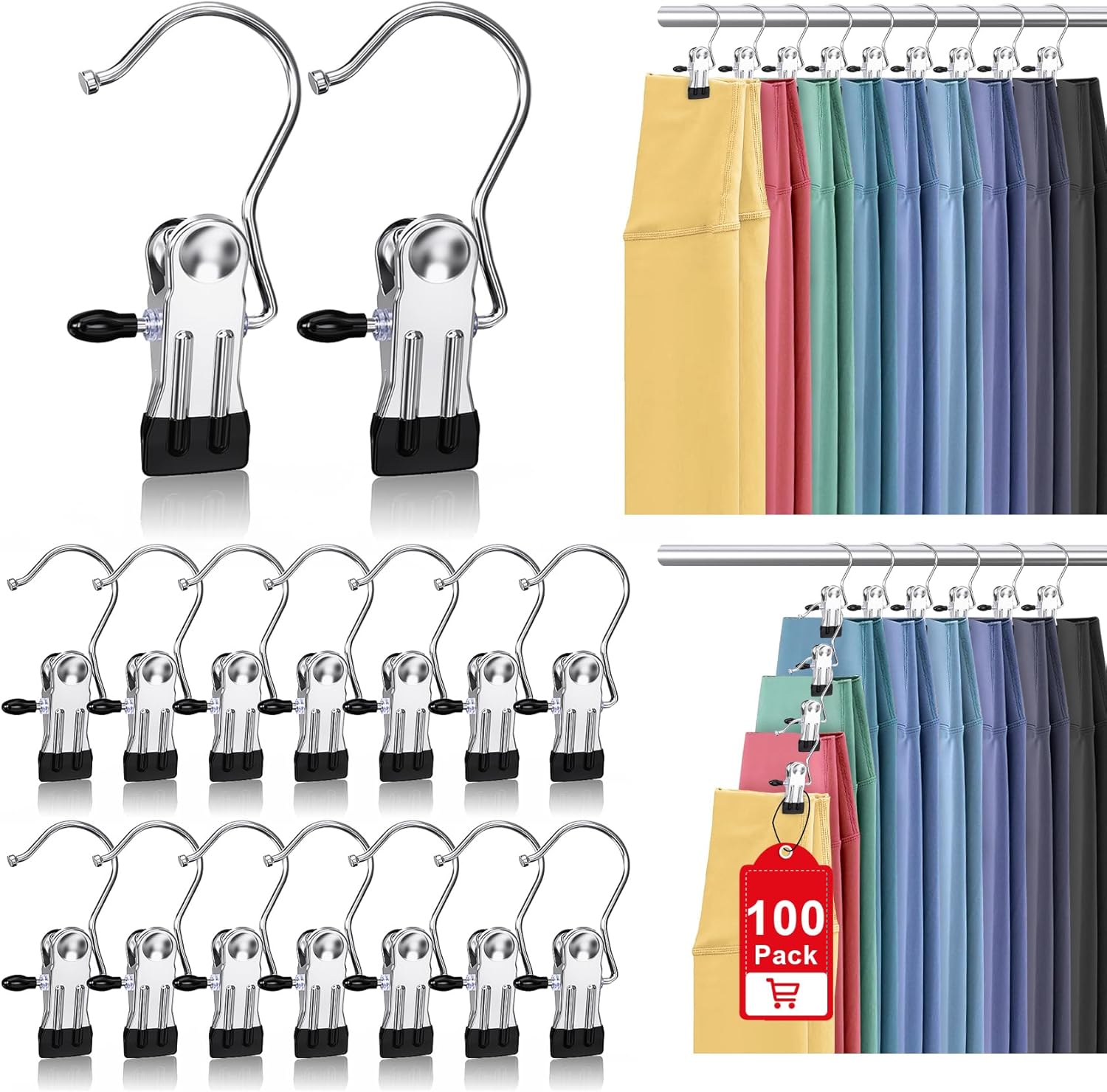 • Value Pack: You will receive 100 boot hangers for closet, great for families or extensive boots collections for seasonal boot closet organization and storage; each leggings hangers for closet measuring 4.3in in length with a robust metal hook diameter of 1.57in, weighs only 0.66 oz; the compact and lightweight hanger clips suit most daily life closet rods, these clothes pins are easy to carry, can be used on RV or camping clotheslines, thus are excellent home and travel essentials