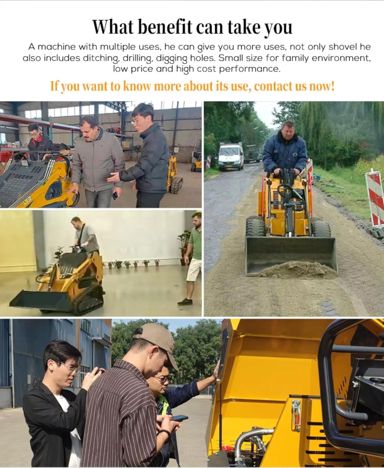 Product name:Skid Steer Loader Place of Origin:Henan, China Type:Backhoe Loader, Front Loader, Mini Loader, Skid Steer Loader, Skid Loaders Moving Type:Crawler /Wheel Loader Warranty:1 Year Hydraulic Cylinder Brand:Other/Free selection Hydraulic Pump Brand:Other Hydraulic Valve Brand:Other/Free selection Machinery Test Report:Provided Video outgoing-inspection:Provided Core Components:PLC, Pressure Vessel, Engine, Pump, Gearbox, Gear, Motor Unlock a world of unlimited possibilities with skid loaders and their extensive range of specialized buckets and attachments. Our innovative hydraulic system empowers you to effortlessly replace the conventional bucket with a wide variety of attachments, tailored to meet your specific needs. The options are virtually endless, offering you a comprehensive selection to enhance the capabilities of your skid loader. Experience the versatility of attachments such as the backhoe, hydraulic breaker, pallet forks, angle broom, sweeper, auger, mower, snow blower, stump grinder, tree spade, trencher, dumping hopper, pavement miller, ripper, tillers, grapple, tilt, roller, snow blade, wheel saw, cement mixer, and wood chipper machine. Take charge of your projects with the power to transform your skid loader into the perfect tool for any job. Whether you're tackling landscaping, construction, or maintenance tasks, our range of attachments ensures that you have the right equipment at your fingertips. With skid loaders, there are no limits to what you can achieve. Experience the freedom to customize your skid loader and unlock its full potential. Maximize efficiency, productivity, and versatility with attachments. Choose quality, reliability, and a world of endless possibilities. Elevate your performance with skid loaders and revolutionize your work.