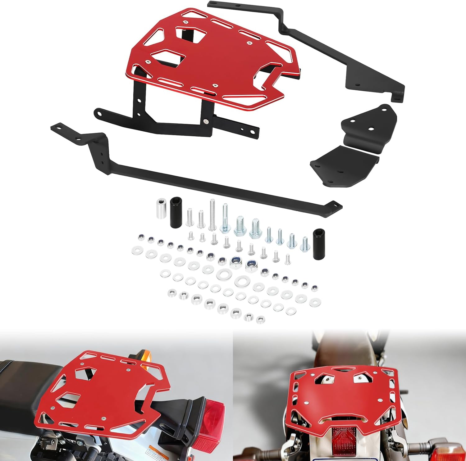Luggage Rear Rack with Sub Frame Support Compatible with XR650L 1993-2025. 【Light+Sturdy+Rust-proof】Crafted from high-quality aluminum, weigh virtually nothing. High strength and hardness to absorb serious impacts.Processed by latest anodic oxidation technology, it has been covered by a protective layer to resistant to any bad weather. 【Easy to Install】The rear tail storage rack is very easy to mount to the motorcycle docking points. The luggage rear rack providing multiple fixed points. Meet mounting different items 【Unique Style】The shape of the crf300l cargo rack fits the rear line of the bike. Our rear luggage rack for motorcycle mounting rack adds a unique, custom style to your ride. 【Package Includes】Contains one rear rack, installation screws, and an instruction manual. No need to worry about installation issues. If you have any questions, please feel free to contact us on Amazon.